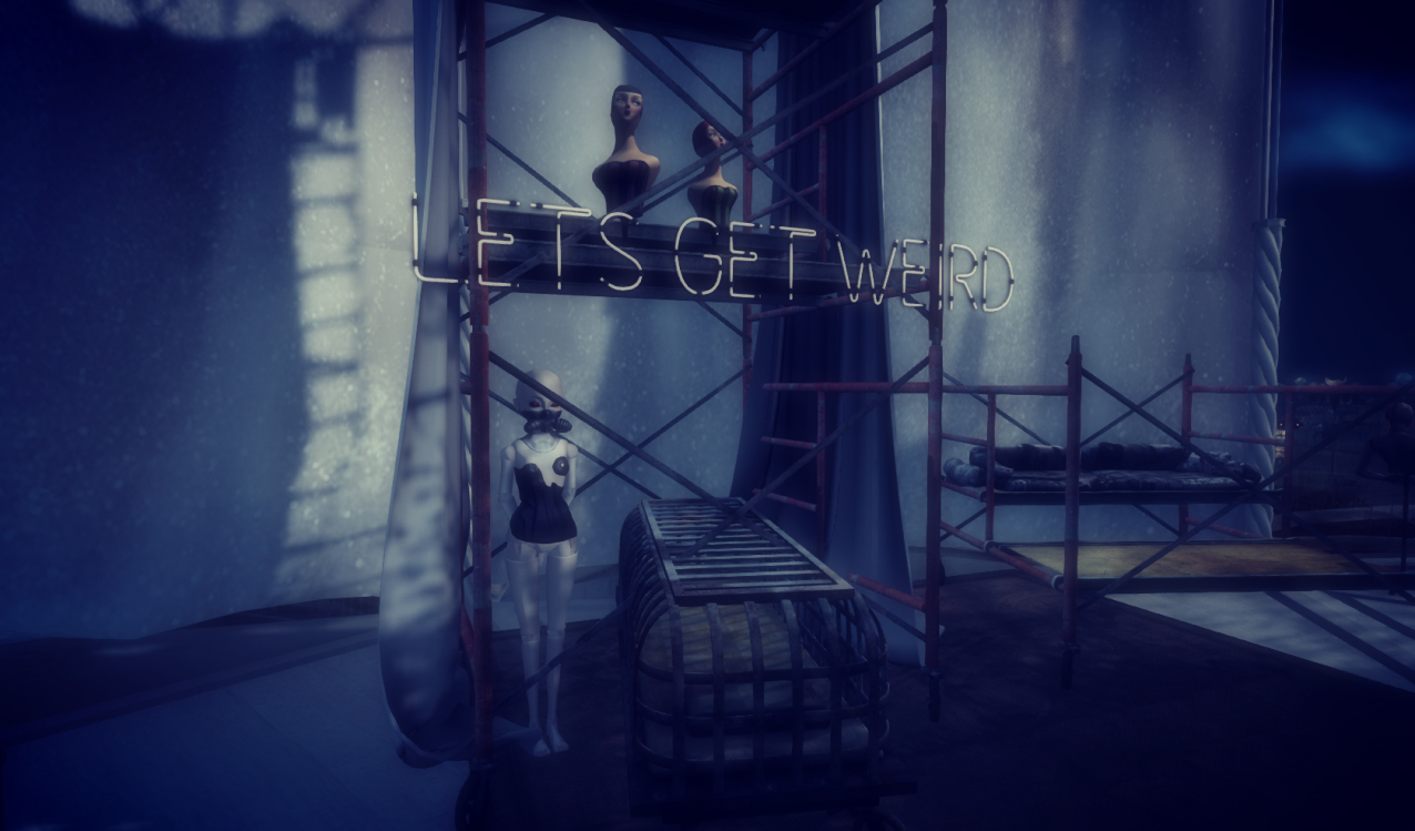 The majority of the objects on the sim are interactive and just praying for a creative mind to take pictures with them. Beautifully laid out, easy to maneuver though, amazingly designed, It is an enjoyable little sim to escape into the chaotic and explore your more "freaky" side.